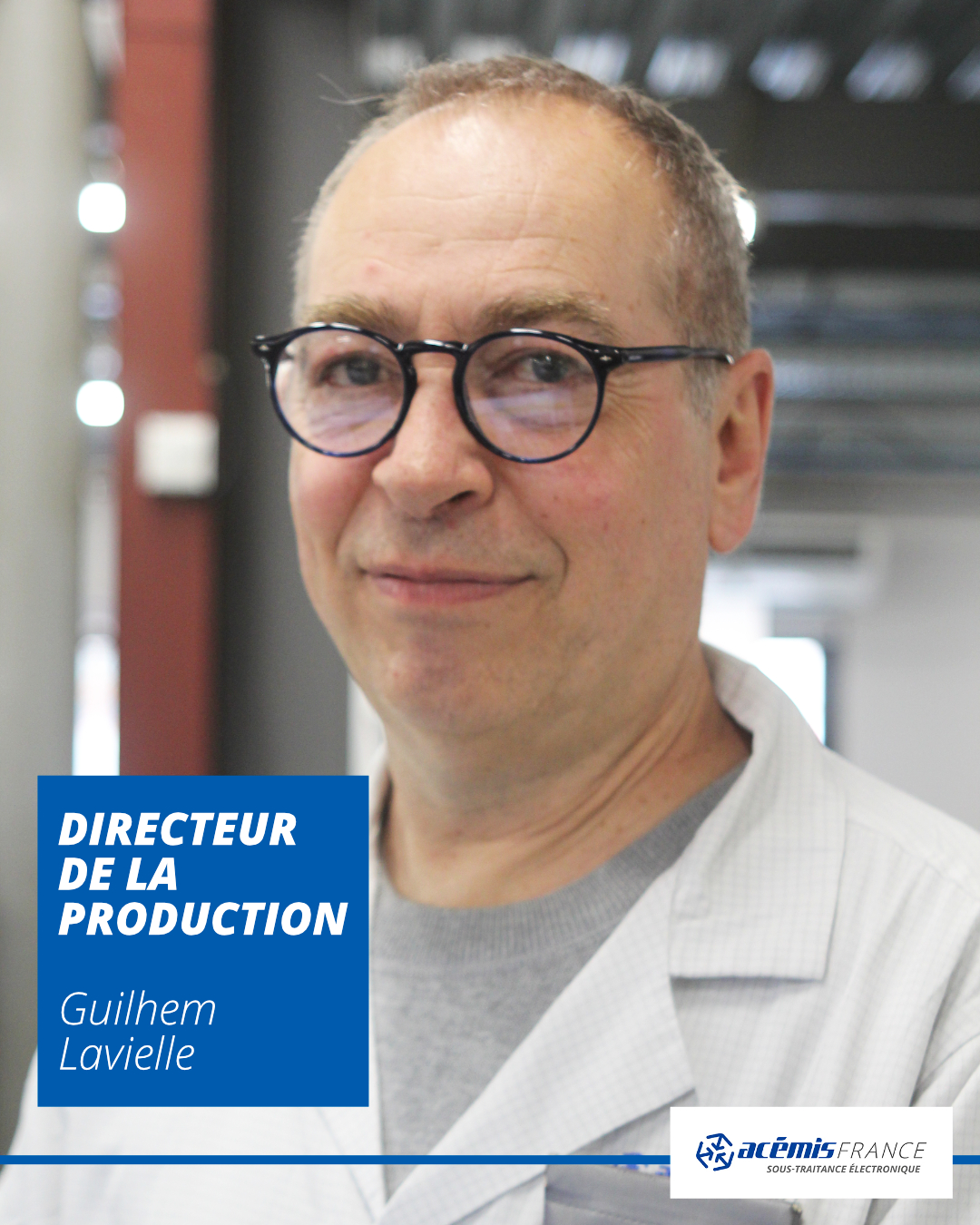 Guilhem Lavielle : Ma formation est pluridisciplinaire en sciences : mathématiques, technique de biologie et mécanique avec un DUT Génie Electrique. J’ai débuté ma carrière dans un EMS comme opérateur CMS puis Responsable du service CMS. J’ai été recruté comme directeur de la production en décembre 2013 chez Acémis. Aujourd’hui, j’ai une expérience de plus de 30 ans dans le métier de la production électronique.
